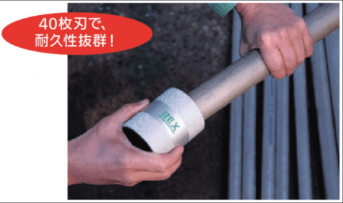 Эта модель разработана японской компанией REX. Может использоваться для металлических труб от 8 до 54 мм в диаметре. Инструмент ручной, не требует электричества для работы. Он компактен, что позволяет использовать его в труднодоступных местах. Его легко разместить в ящике с инструментами.