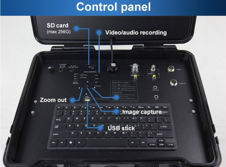 Литой кейс для защиты блока управления и монитора изготовлен из специального вида пластика, способного выдержать вес взрослого человека, полностью герметичен